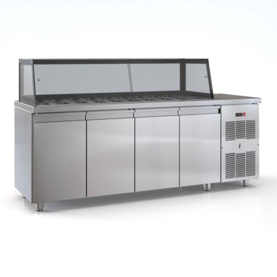 Ψυγείο σαλατών συντήρηση 4 πόρτες και μηχανή δεξια 2 σειρές GN 220x70x126 εκ ID-PSM22070SALAD