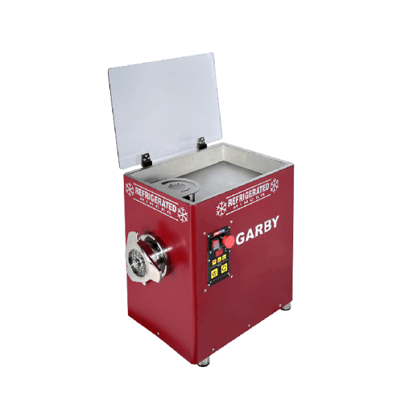 Εξ ολοκλήρου ανοξείδωτη κατασκευή (18/10) με μονοκόμματο καπάκι και ταψίΜε Ψυκτικό κύκλωμα για τέλεια ψύξη στο ταψί και στην μπούκα διατηρώντας το κρέας σε άριστη κατάσταση.Το κοπτικό σύστημα της κρεατομηχανής αφαιρείται εύκολα για τον καθαρισμό του. Αθόρυβη λειτουργεία μοτέρ μειωτηρα αλλά και του ψυκτικού μηχανήματος.