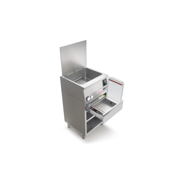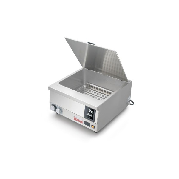 - Ισχυρή συσκευή μαγειρέματος σε κενό αέρος που χρησιμοποιεί σύστημα κυκλοφορίας νερού έξω από τη δεξαμενή, ώστε να μπορεί να εκμεταλλευτεί όλο τον διαθέσιμο χώρο της χωρητικότητας της δεξαμενής των 70 λίτρων. - Το μονωμένο καπάκι, η γενναιόδωρη ισχύς των 7,5 Kw και το ισχυρό σύστημα κυκλοφορίας νερού εξασφαλίζουν εξαιρετική ταχύτητα θέρμανσης και τέλεια ομοιομορφία στην κατανομή θερμότητας. - Το χειριστήριο αφής Wi-food επιτρέπει την ακριβή διαχείριση της θερμοκρασίας με ακρίβεια Delta T μόλις 0,2 °C. Ο έλεγχος μπορεί να χρησιμοποιηθεί μέσω της δωρεάν εφαρμογής RCS (Remote Control System), η οποία είναι διαθέσιμη για λήψη τόσο για συστήματα Android όσο και για iOS. Μπορεί να χρησιμοποιηθεί σε βαθμούς Κελσίου και Φαρενάιτ, με 10 προγράμματα που μπορούν να αποθηκευτούν απευθείας στη συσκευή και έναν άπειρο αριθμό προγραμμάτων που μπορούν να διαχειριστούν μέσω της εφαρμογής. - Η συσκευή μπορεί να συνδεθεί στο σύστημα νερού μέσω δύο πρακτικών βρυσών που βρίσκονται στο μπροστινό μέρος, διαχειριζόμενη έτσι τη φόρτωση και την εκφόρτωση του νερού απευθείας από τη συσκευή. Προαιρετικά: - Ειδικό ντουλάπι από ανοξείδωτο ατσάλι με ενδιάμεσο ράφι. Δυνατότητα ενσωμάτωσης των ενσωματωμένων μηχανών συσκευασίας κενού αέρος.