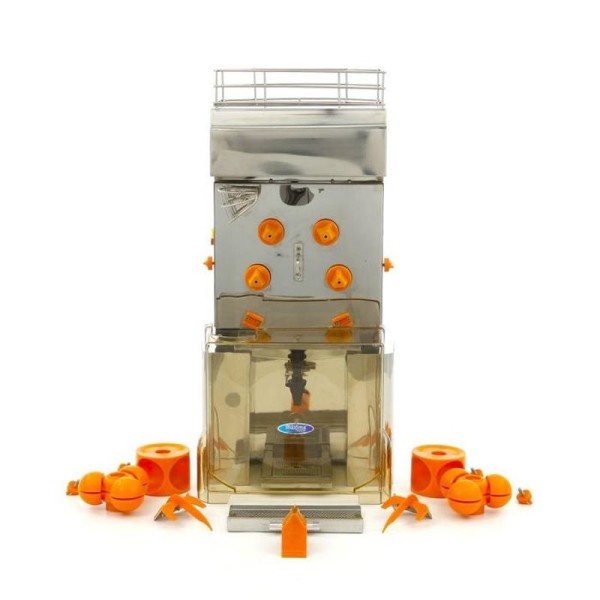 Αυτός ο αυτόματος αποχυμωτής εσπεριδοειδών είναι το τέλειο βοήθημα κουζίνας για την παρασκευή φρεσκοστυμμένου χυμού πορτοκαλιού. Το στιβαρό επιτραπέζιο μοντέλο φαίνεται υπέροχο σε ένα μπαρ, στο εστιατόριο ή, για παράδειγμα, στο σούπερ μάρκετ ή στο βενζινάδικο. Το αυτόματο σύστημα παροχής πορτοκαλιών εξασφαλίζει ότι το μηχάνημα μπορεί να κάνει τη δουλειά του γρήγορα και εύκολα. Ο αποχυμωτής έχει χωρητικότητα φόρτωσης 20 κιλών και μπορεί να συμπιέζει 20 έως 25 πορτοκάλια κάθε λεπτό. Είναι επίσης δυνατό να παραγγείλετε ένα καροτσάκι από ανοξείδωτο ατσάλι, το οποίο είναι πολύ βολικό όταν θέλετε να μεταφέρετε τον αποχυμωτή σε άλλο μέρος ή για τον καθαρισμό.
