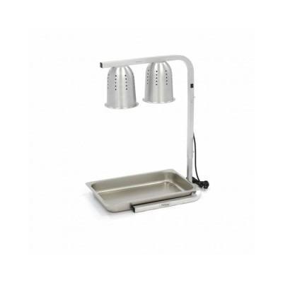 Χάρη στο συμπαγές μέγεθός της, η λάμπα θέρμανσης καταλαμβάνει πολύ λίγο χώρο. Επίσης, μετακινείται εύκολα, χάρη στο χαμηλό του βάρος. Τόσο το σκίαστρο όσο και η βάση είναι κατασκευασμένα από αλουμίνιο. Μπορείτε να ρυθμίσετε τη λάμπα θέρμανσης σε ύψος για διαφορετικά επίπεδα έντασης θερμότητας. Οι αεριζόμενοι ανακλαστήρες αλουμινίου διασφαλίζουν ότι δεν μπορεί να προκληθεί υπερθέρμανση. Η απόσταση μεταξύ των ποδιών είναι 30 cm. Θα παραλάβετε δύο λαμπτήρες 275W και ένα δίσκο 1/1 GN βάθους 6,5cm.