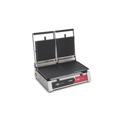 - Πλάκες από χυτοσίδηρο μεγάλης διάρκειας ζωής, οι οποίες εξασφαλίζουν υγιεινή, αντοχή σε οξέα και αλάτι, καθώς και αντοχή στην οξείδωση. - Η ψηφιακή οθόνη και τα 4 χειριστήρια (με πολλαπλές λειτουργίες) καθιστούν τη διαδικασία μαγειρέματος πιο αποτελεσματική. Τα νέα χειριστήρια σάς επιτρέπουν να ρυθμίσετε τη θερμοκρασία μαγειρέματος και τον ηχητικό χρονοδιακόπτη. - Ο θερμοστάτης μπορεί να ρυθμιστεί σε °C και °F και είναι ρυθμιζόμενος έως 300°C σε εύρος 5 °C κάθε φορά. - Μόλις ρυθμιστεί ο χρονοδιακόπτης, ξεκινά η αντίστροφη μέτρηση και είναι ορατή στην οθόνη. Ένας ρυθμιζόμενος βομβητής θα σας προειδοποιήσει ότι το προϊόν είναι έτοιμο. - Μπορείτε να διαχειριστείτε τα δύο μισά της σχάρας ξεχωριστά χάρη στους δύο θερμοστάτες.