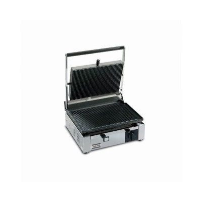 Ηλεκτρικές ψησταριές επαφής με πλάκες από χυτοσίδηρο με αυλάκωση με ειδική επεξεργασία, για εύκολο καθαρισμό, αυτόματη ισορροπημένη επάνω πλάκα με ατσάλινα ελατήρια, Προστατευτικές λαβές, ρυθμιζόμενος θερμοστάτης με ενσωματωμένο περιστροφικό διακόπτη