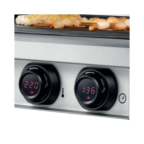 Άριστη θερμική αγωγιμότητα , ανθεκτική κατασκευή και εύκολο χειρισμό με μοχλό με ψηφιακή ένδειξη , χρονομετρητή και ακουστικό σήμα.