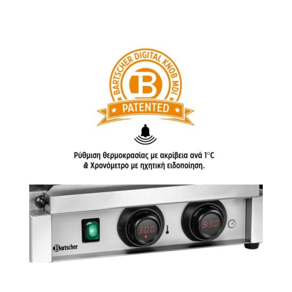 Τοστιέρα μεσαία ηλεκτρική , με ραβδωτή επιφάνεια πάνω και λεία κάτω , Panini-MDI 1GR Bartscher Γερμανίας.