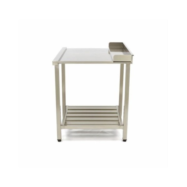 Αυτό το επαγγελματικό τραπέζι πλυντηρίου πιάτων με νεροχύτη είναι κατασκευασμένο από υψηλής ποιότητας ανοξείδωτο ατσάλι και διαθέτει ένα εύχρηστο πίσω μέρος στο πλάι και στο πίσω μέρος. Το κάτω μέρος του νεροχύτη περιλαμβάνει ένα ράφι για την αποθήκευση αντικειμένων, όπως τα καλάθια του πλυντηρίου πιάτων και το απορρυπαντικό. Αυτό το τραπέζι πλυντηρίου πιάτων διαθέτει νεροχύτη στη μέση.