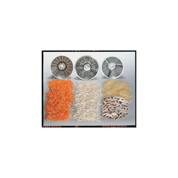 Ισχυρός, συμπαγής, βαρέως τύπου τρίφτης, κατασκευασμένος από ανοξείδωτο ατσάλι και ανοδιωμένο αλουμίνιο. - Η θήκη δίσκων από γυαλισμένο αλουμίνιο είναι πλήρως αφαιρούμενη για καθάρισμα. - Δίσκοι για μαχαιροπίρουνα από χάλυβα και αλουμίνιο. - Δίσκος από ανοξείδωτο ατσάλι. - Κίνηση με ιμάντα Poly-V. - Προστατευτικό στο άνοιγμα της θήκης δίσκων. - Ηλεκτρονικός πίνακας με κουμπιά 24 V με NVR.