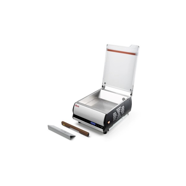 Συμπαγής και γρήγορη μηχανή, αφιερωμένη σε μικρές μερίδες, ιδανικός συνδυασμός με εργαλεία μαγειρέματος τύπου Softcooker χαμηλής θερμοκρασίας. Εύκολη ρύθμιση του χρόνου κενού και συγκόλληση. Εύκολα αφαιρούμενη ράβδος σφράγισης. Αντλία κενού Busch. Ένδειξη ποσοστού κενού και υπολειπόμενου χρόνου. Αποθήκευση τελευταίας ρύθμισης. Συνολική χρήση μετρητή κύκλου. Αντλία προθέρμανσης κύκλου και μήνυμα αλλαγής λαδιού καθαρισμού. Εξωτερικός χρόνος κενού. Χειροκίνητη ανύψωση καπακιού.