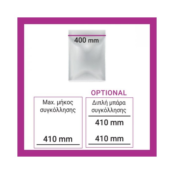 | Μέγιστο μήκος σακούλας | 400 mm |
