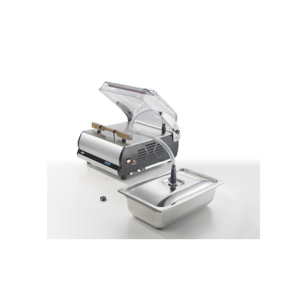 - Ο εξαιρετικός σχεδιασμός μειώνει το αποτύπωμα της μηχανής και βελτιώνει την άνεση - Καμπάνα σε μεγάλη ανάπτυξη θερμοδιαμορφωμένου πλεξιγκλάς σε πάχος όγκου στη mod. 50, έγχυση σε Tritan στις mod. 30 και 40 - Εύκολα αφαιρούμενη ράβδος στεγανοποίησης - Εξαιρετικά εύκολος καθαρισμός χάρη στην τέλεια επιπεδότητα του σχεδίου στήριξης του προϊόντος κατασκευασμένου σε ανοξείδωτο χάλυβα AISI 304 πάχους 5 mm - Αυτόματη ανύψωση του καπακιού μέσω πνευματικών εμβόλων - Επιφάνεια για σακούλες υγρών - Εύκολα και διαισθητικά χειριστήρια αφής - 10 προγράμματα που μπορούν να αποθηκευτούν από τον χρήστη - Πρόγραμμα μαριναρίσματος - Εξωτερικό πρόγραμμα κενού - Μετρητής κύκλων - Δεν διατίθεται με εκτυπωτή ή έκπλυση αερίου - Αυτόματη ανύψωση καπακιού μέσω πνευματικών εμβόλων Προαιρετικά: - Σωλήνας για εξωτερική αναρρόφηση - Δεξαμενές GN για εξωτερική αναρρόφηση - Στήριγμα πλεξιγκλάς.