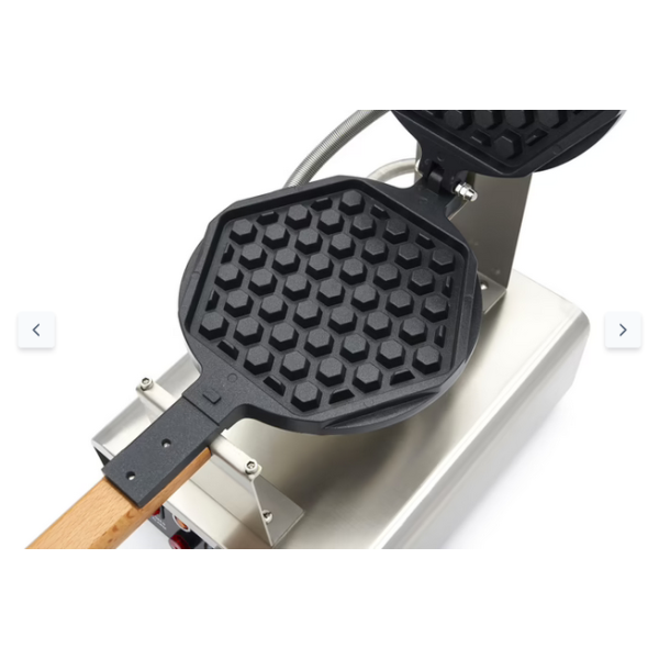Σερβίρετε στους πελάτες σας τις πιο νόστιμες βάφλες στο καφέ, το ζαχαροπλαστείο ή την αγορά σας. Με αυτή τη συσκευή παρασκευής βάφλας μπορείτε να δημιουργήσετε νόστιμες βάφλες με κηρήθρα με τραγανή εξωτερική επιφάνεια και μαλακό εσωτερικό. Χρησιμοποιήστε το πατροπαράδοτο σχήμα κηρήθρας σε αυτή την πολύ μοντέρνα ηλεκτρική συσκευή παρασκευής βάφλας. Η βαφλιέρα μπορεί επίσης να περιστρέφεται, ώστε οι βάφλες να ψήνονται ομοιόμορφα σε χρυσοκάστανο χρώμα στο πάνω και στο κάτω μέρος. Ο αλουμινένιος δίσκος αυτής της βαφλιέρας διαθέτει αντικολλητική επίστρωση, ώστε να μην κολλάνε οι βάφλες. Επιπλέον, αυτή η κυψελωτή βαφλιέρα διαθέτει ένα ισχυρό θερμαντικό στοιχείο που θερμαίνει γρήγορα το δίσκο και τον διατηρεί εύκολα ζεστό