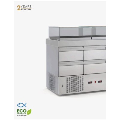 Βιτρίνα με επάλληλα κρύσταλλα & Αποθήκη ψαριών με 4 συρτάρια συντήρηση φυσικής ψύξης & μοτέρ κάτω 90χ70χ1120εκ ID-PSAR9070.EPL