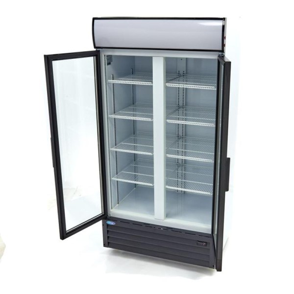 Εάν έχετε αρκετό χώρο στην κουζίνα σας ή στο χώρο εστίασης, αυτό το επαγγελματικό ψυγείο ποτών είναι χρήσιμο. Διατηρεί μια μεγάλη ποσότητα αποθεμάτων δροσερή. Χάρη στον ενσωματωμένο φωτισμό LED, όλα τα προϊόντα παρουσιάζονται επίσης ελκυστικά. Το διαφημιστικό πάνελ στο επάνω μέρος του ψυγείου είναι ιδανικό για την προβολή διαφόρων διαφημιστικών μηνυμάτων. Επιπλέον, ο πίνακας είναι εξοπλισμένος με οπίσθιο φωτισμό για καλύτερη ορατότητα. Αυτό το ψυγείο ποτών είναι εξοπλισμένο με δύο αρθρωτές πόρτες με διπλά τζάμια, καθεμία από τις οποίες μπορεί να κλειδώσει με ενσωματωμένη κλειδαριά.