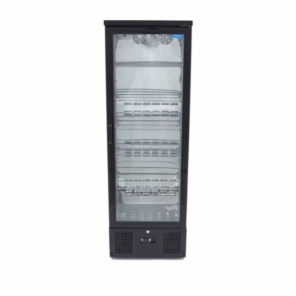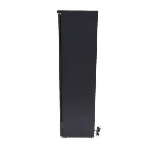 Αυτό το κομψό μαύρο ψυγείο ποτών είναι ιδανικό για χώρους εστίασης με περιορισμένο χώρο. Πρόκειται για ένα ψηλό μοντέλο με μία μόνο ανοιγόμενη πόρτα που σας επιτρέπει να αποθηκεύετε πολλά προϊόντα κάθετα, εξοικονομώντας πολύτιμο χώρο, ενώ διατηρεί τα πάντα τέλεια διατηρημένα σε ψύξη μέχρι να τα χρειαστείτε. Αυτά τα ψυγμένα προϊόντα παρουσιάζονται στους πιθανούς πελάτες ελκυστικά και επαγγελματικά, χάρη στον ενσωματωμένο φωτισμό LED. Η πόρτα συνοδεύεται από κλειδαριά και δύο κλειδιά για την ασφάλειά της και, επειδή το ψυγείο είναι τροχήλατο, μετακινείται εύκολα. Στο εσωτερικό του υπάρχουν πέντε ράφια, το καθένα από ανοξείδωτο χάλυβα, που μπορούν να ρυθμιστούν καθένα σε ύψος για βέλτιστη διάταξη.