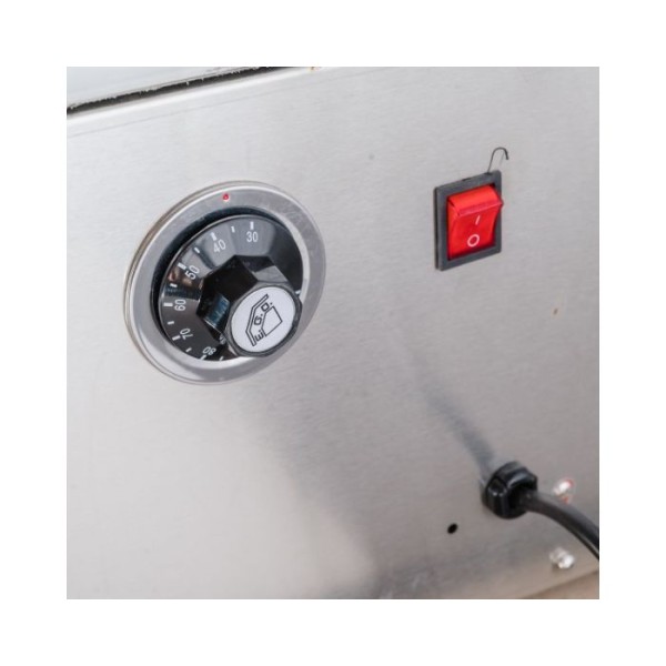 Επιτραπέζια θερμαινόμενη πανοραμική βιτρίνα - θερμοθάλαμος inox , χωρητικότητας 195 lt , με φωτισμό Led.