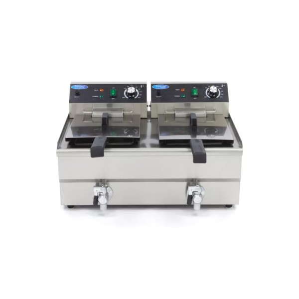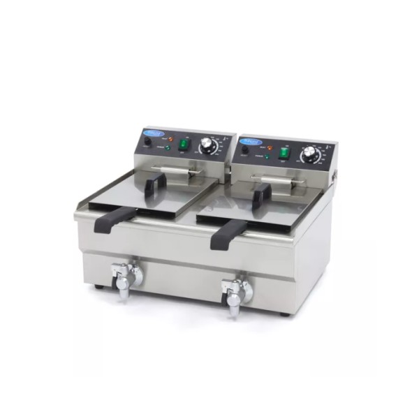Φριτέζα ηλεκτρική επιτραπέζια 2 x 10L με βρύση αποστράγγισης - Διπλό καλάθι 57.5Χ50Χ35 MAX-09365229