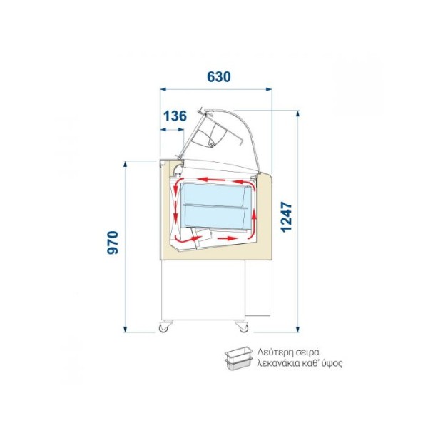Βιτρίνα θερμαινόμενη επιτραπέζια 105lt DLH 70