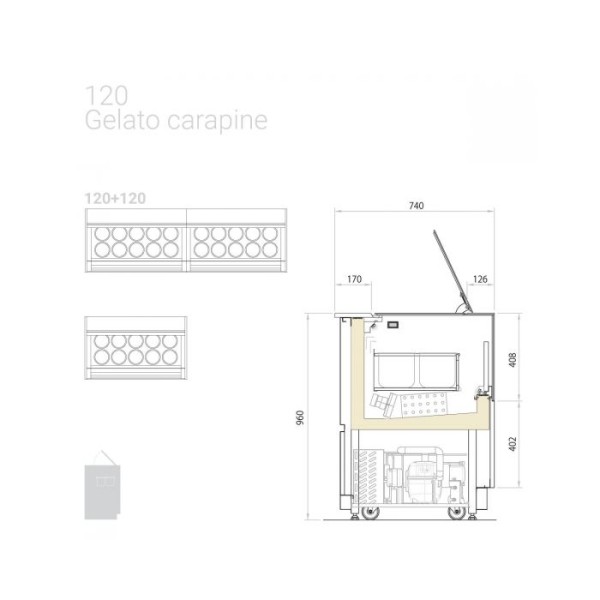 Βιτρίνα παγωτού τροχήλατη για 8 καραπίνες CARRETINO CARAPINE