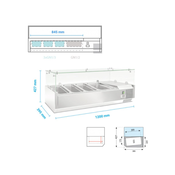 Ψυγείο σαλατών επιτραπέζιο για 3 GN 1/3 & 1 GN 1/2 120X39,5X22.5X(42.7)εκ RWX 1200