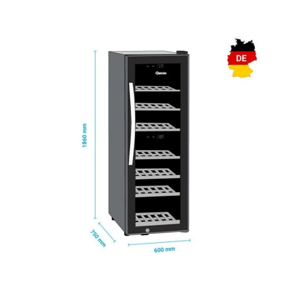 Ψυγείο Βιτρίνα κρασιών 2 θερμοκρασιών στενή (Slim) συντήρηση μάυρο 39.6X58X103 εκ 700130